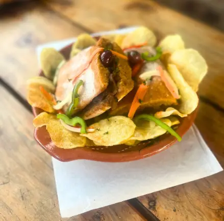 Succulent rump cubes, braised in garlic & wine broth, served with our signature chips & fresh panini
